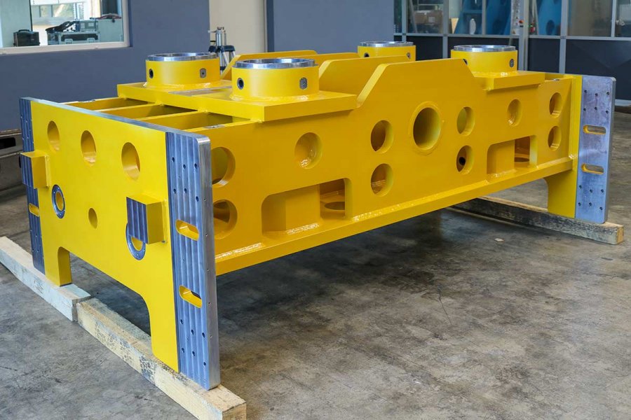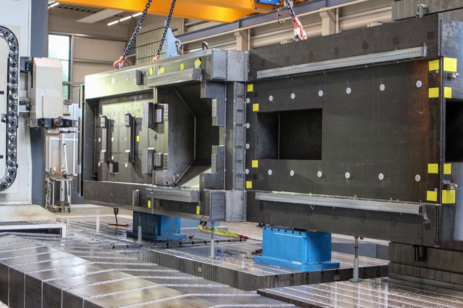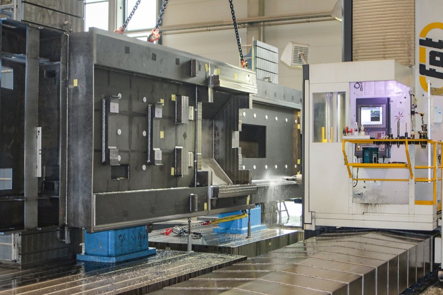 Wir verfügen über einen modernen CNC-Maschinenpark mit dem wir unter anderem bis zu einer Länge von 6500 mm und einem Stückgewicht von 20 Tonnen fertigen. Auf 5-Achs-Maschinen werden komplexe 3D-Konturen produziert.